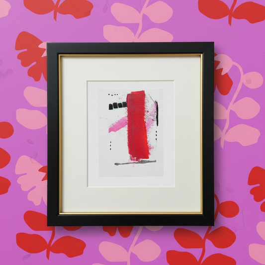 Red Hot Pink Stripe Abstract Mini Watercolor Original Painting 3.5 x4.5"