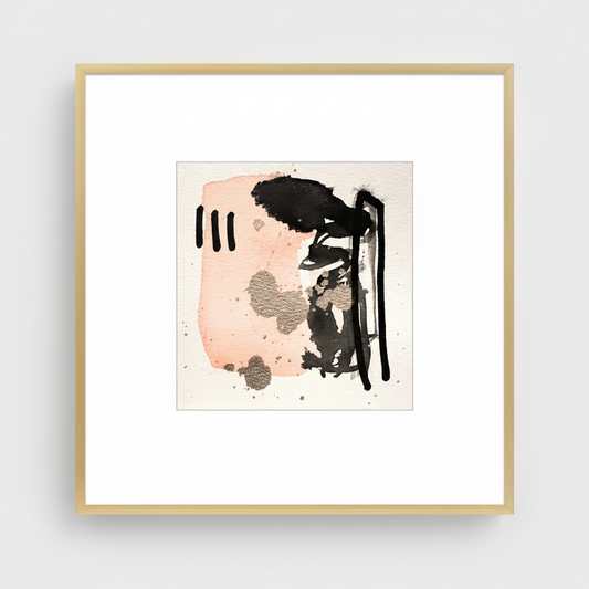 Neutral Blush and Black Abstract Watercolor (12 x 13.5 cm)